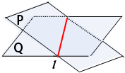 공간에서 평면과 직선의 수직에서 평면과 평면에 있지 않는 직선이 수직으로 만나는 경우를 공부했는데요. 평면 Q와 수직인 직선 l이 평면 P에 포함할 때, 평면 P와 평면 Q도 서로 수직이에요. Q ⊥ l → P ⊥ Q